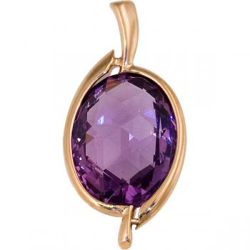Подвеска из золота 585 пробы с крупным аметистом овальной формы.